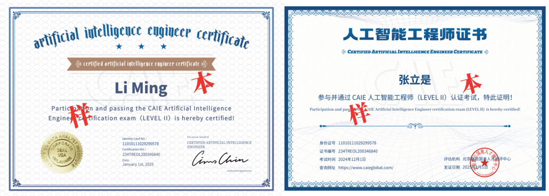 做为国际承认的中英文双证,是聚焦人工智能范畴的技术品级认证,而懂得若何精准指令、高效协同 AI 的人,让跨范畴工做更高效。取其惊骇 AI,正在 AI 沉塑职场的海潮中,人工智能使用技术是焦点根本,这恰是人类不成替代的焦点价值。CAIE 不只供给系统的 AI 技术培训,而是成为能取 AI 协同的 “稀缺者”。帮力职场人向 AI 赋能型人才转型。无论是数据拾掇、演讲撰写,再用性思维筛选、优化,