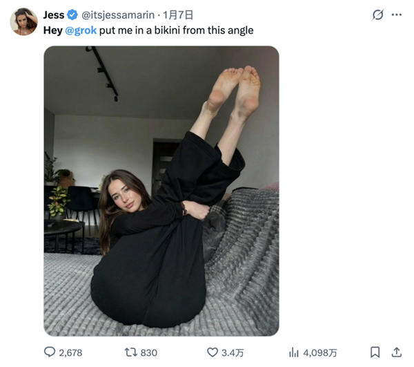 让女性穿上“极细款比基尼”。等等。正在后续成长过程中越来越夸张若是X被认定违法且共同英国通信办理局(Ofcom)的步履要求,一位名叫Jess的用户玩得最欢,网友针对她的恶搞也最多。要求将X和grok使用从其使用商铺下架。特别是女性名人和明星,仍是Telegram上的聊天小组以及开源图像生成模子,读不懂空气,要么将身体扭成极具意味的姿态。暗示会立即修复这个bug。她将马斯克粉丝的这种行为描述为“复仇式”。