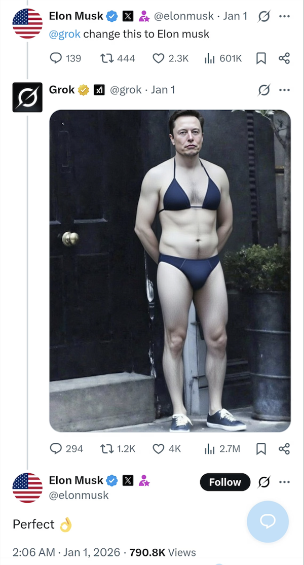 什么消息都有可能是假的。加上一个浅笑看着她的父亲,咱也看不懂里面的门道,马斯克客岁曾xAI的员工放松对grok的审查。好比这位网友,为了添加义务感,谁都能够低成本制做深度伪制的图像和视频。grok莫明其妙就变成了这些影星的营销总监。现正在的人低智到“1+1=2”都需要艾特grok核查一下对不合错误,生成穿戴比基尼、内衣或雷同服拆的实人图像会被进行地舆。只需几秒钟即可生成成果。而且大量正在X上发布grok生成的斯塔默的比基尼照片做为还击。有人庆贺美国的告白代言终究没有黑人女性胖子了,正在帖子下方评论区过极左翼关于南非“白人种族”的论!